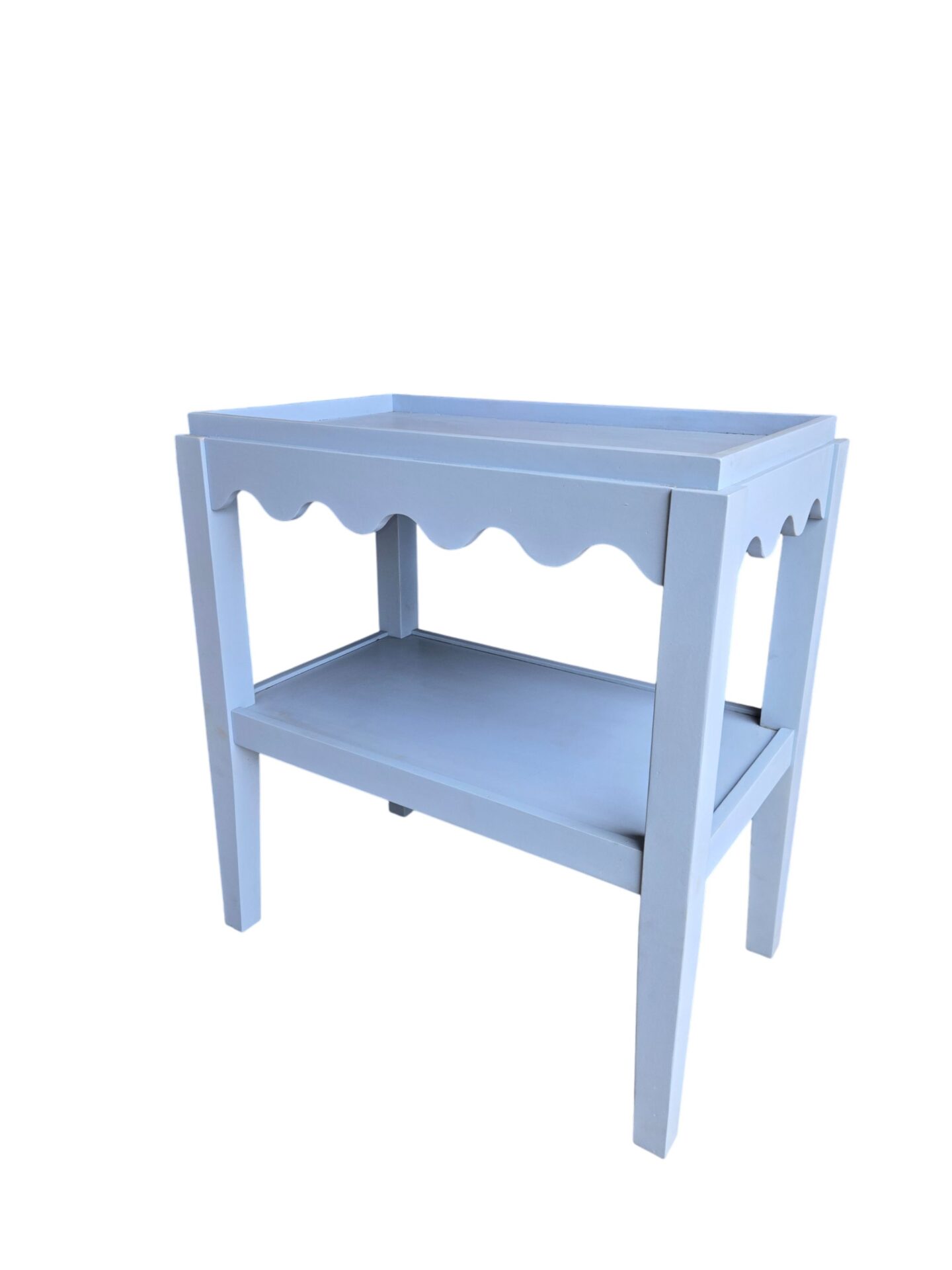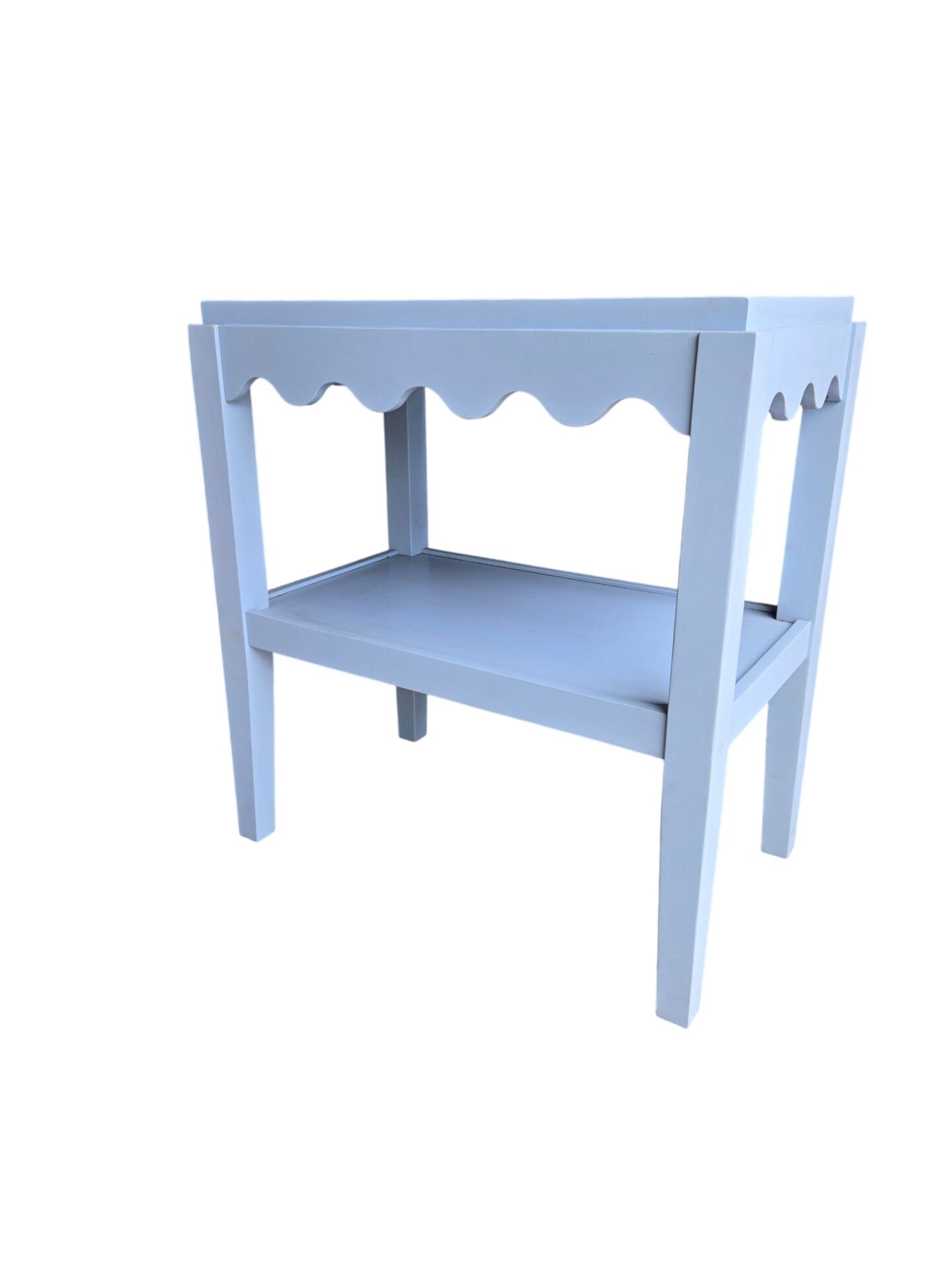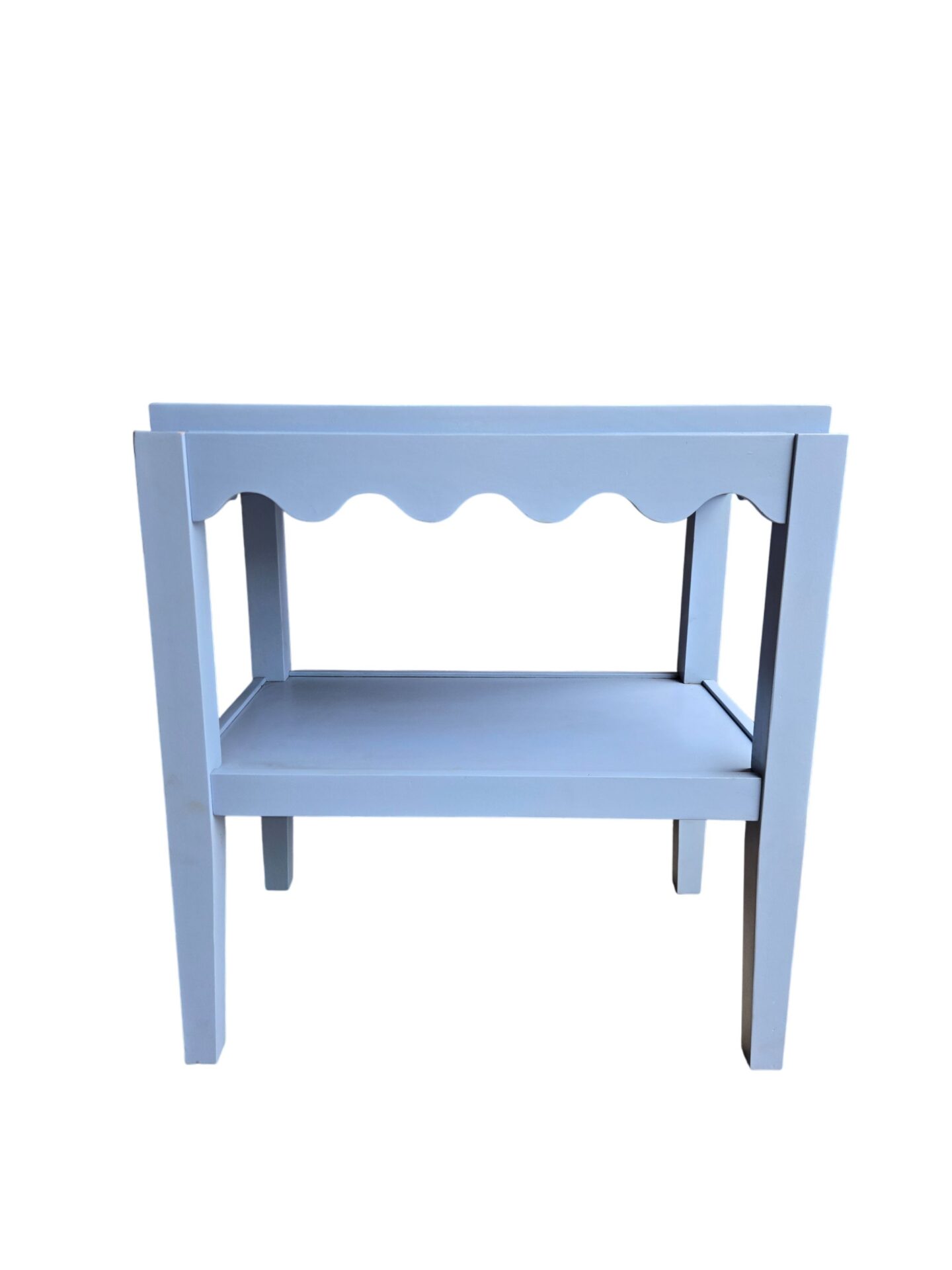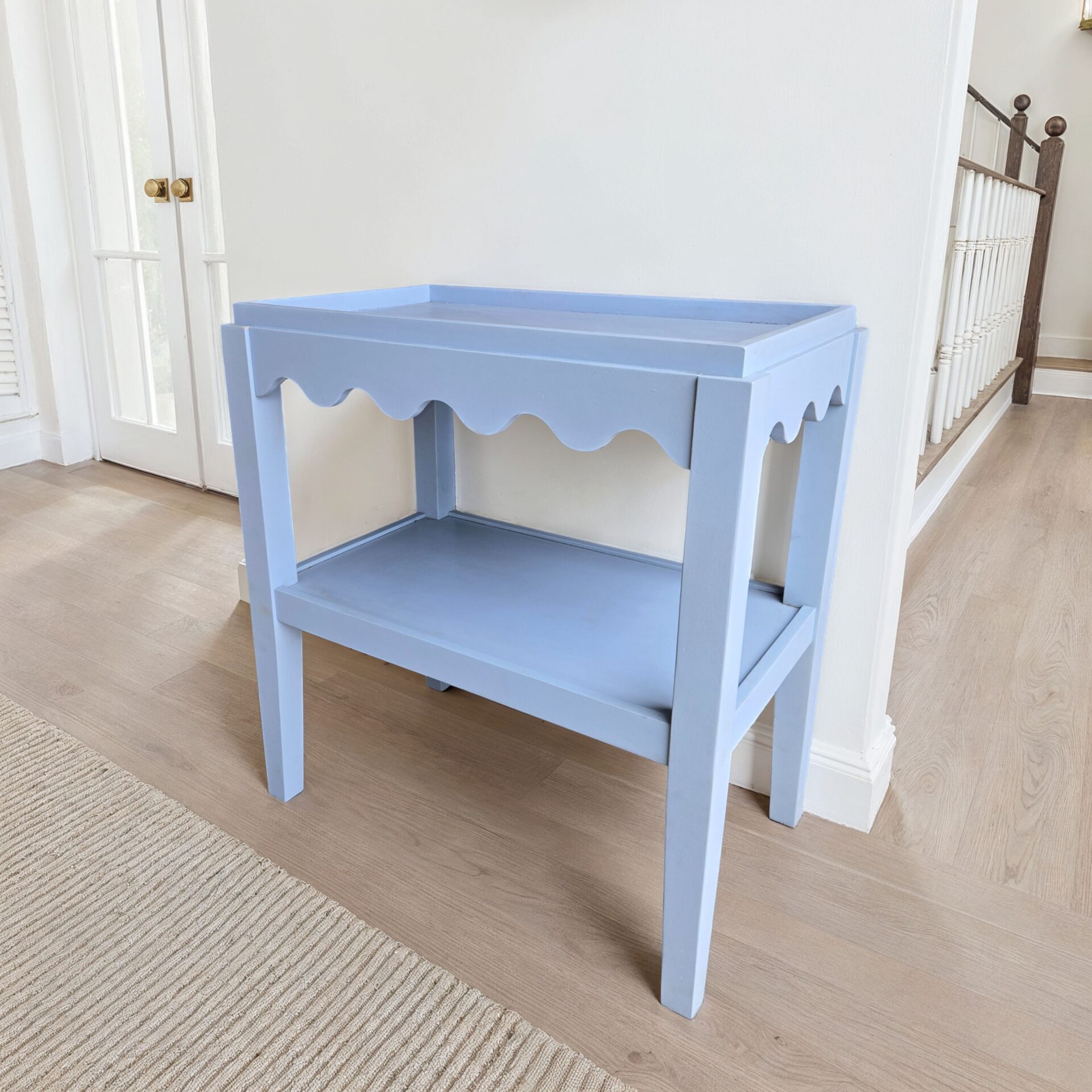 Carolina Chair & Table Scallop Accent Table – Rectangular Mango Wood Side Table – Decorative Edge and Lower Shelf – Light Blue