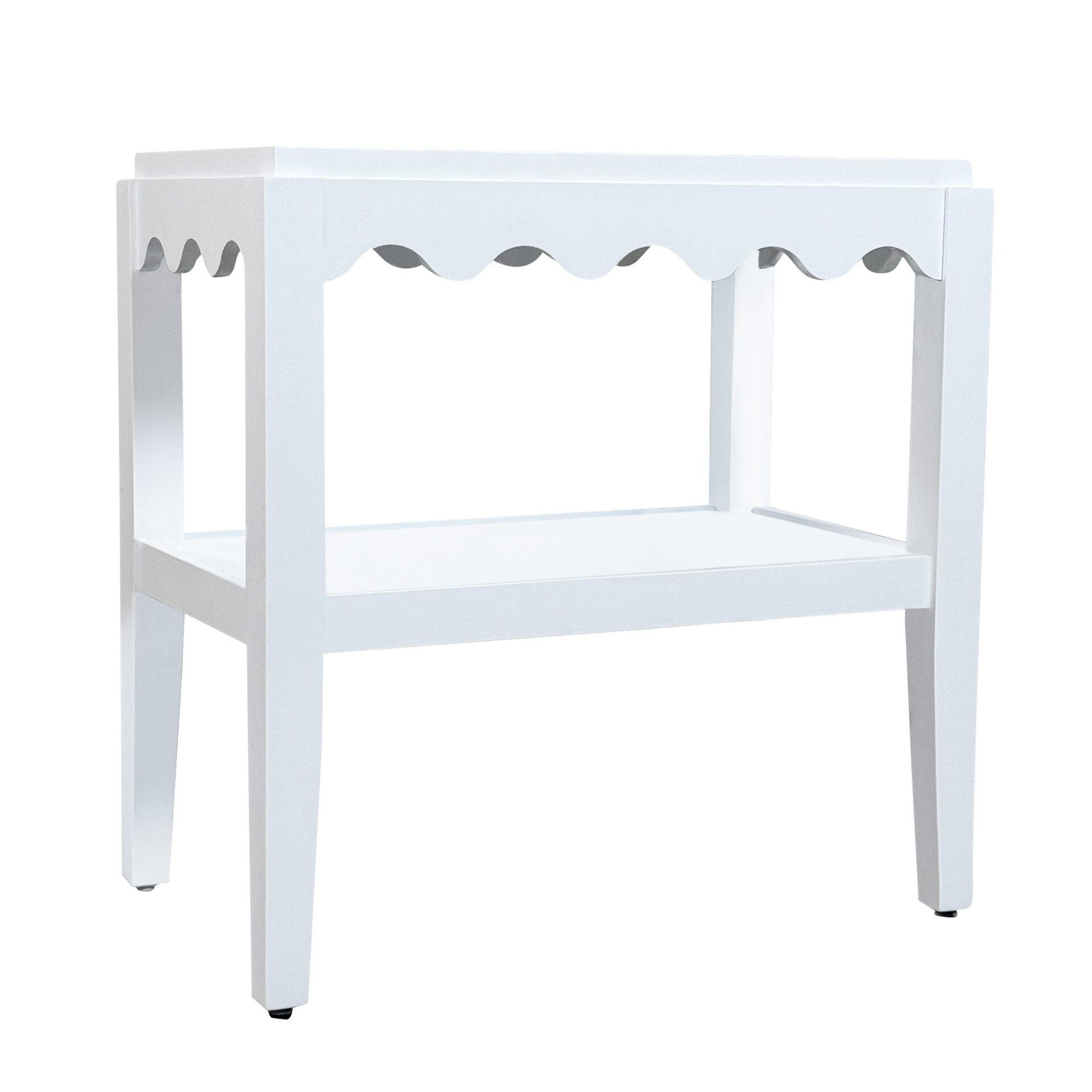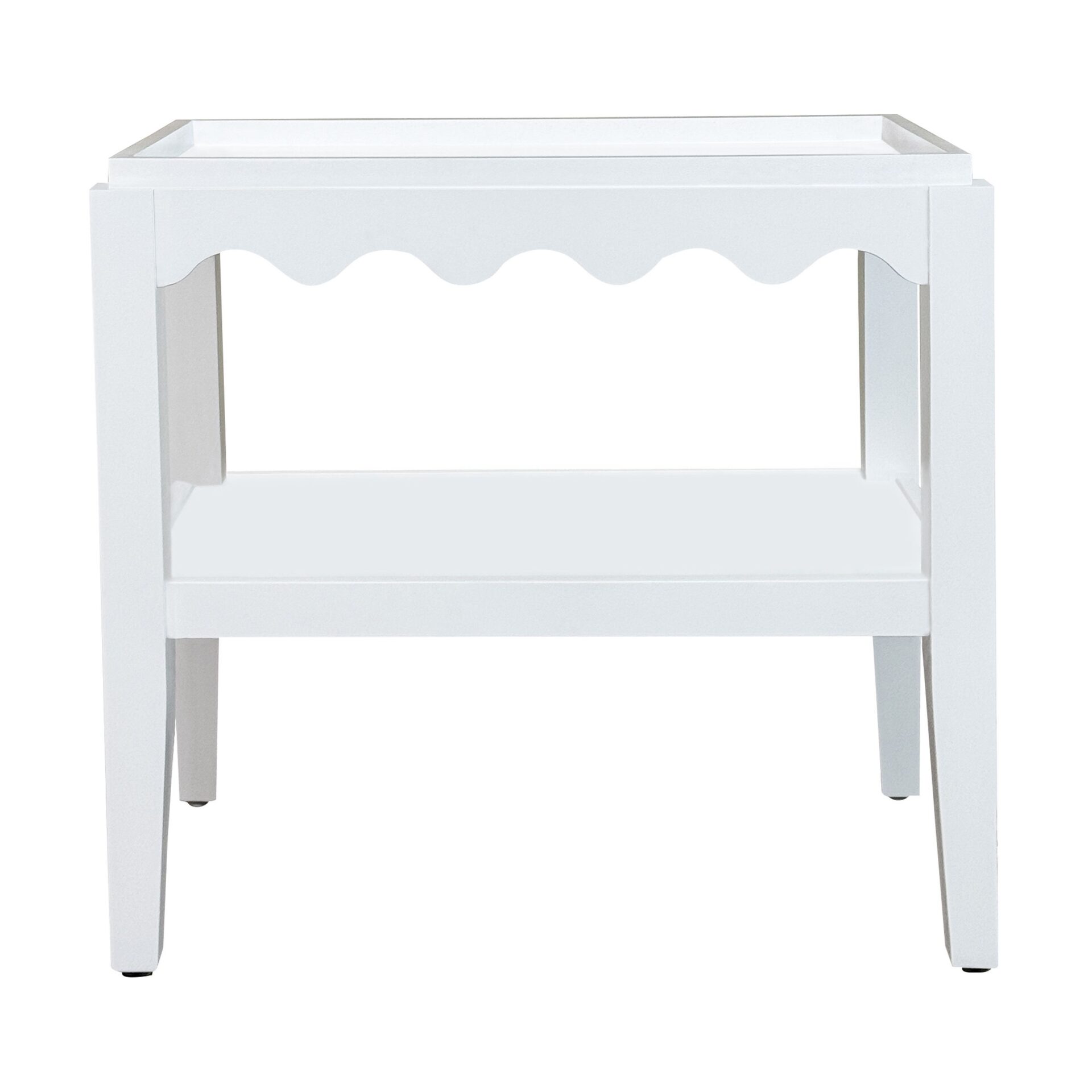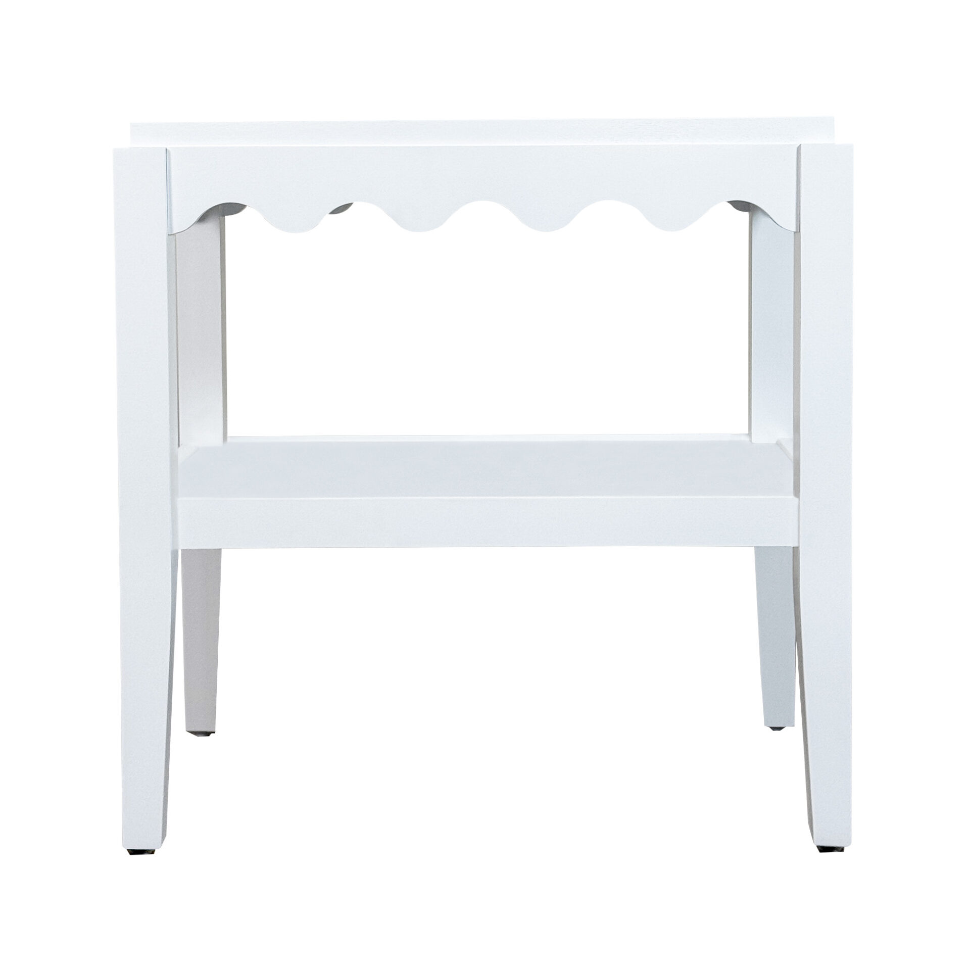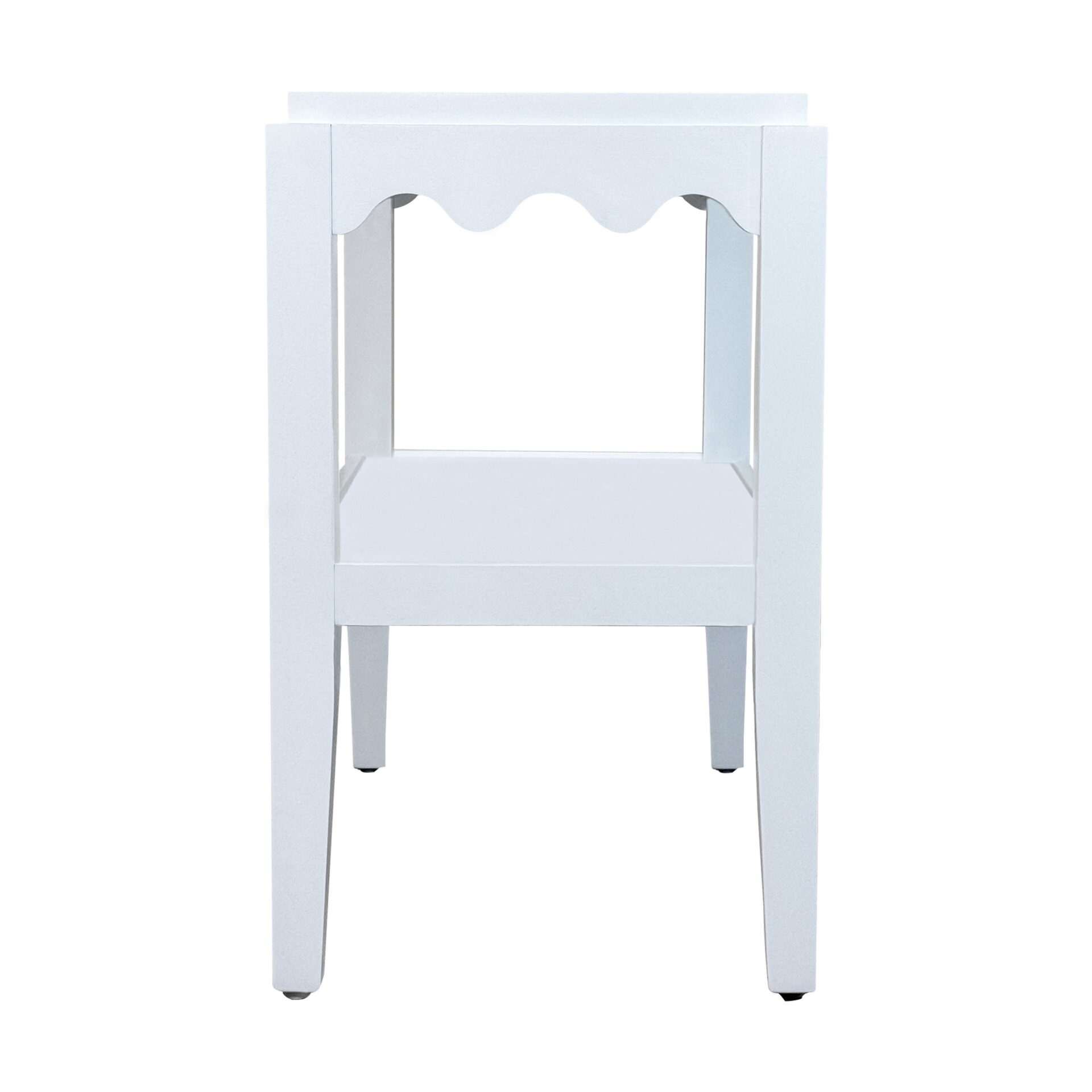 Carolina Chair & Table Scallop Accent Table – Rectangular Mango Wood Side Table – Decorative Edge and Lower Shelf – White