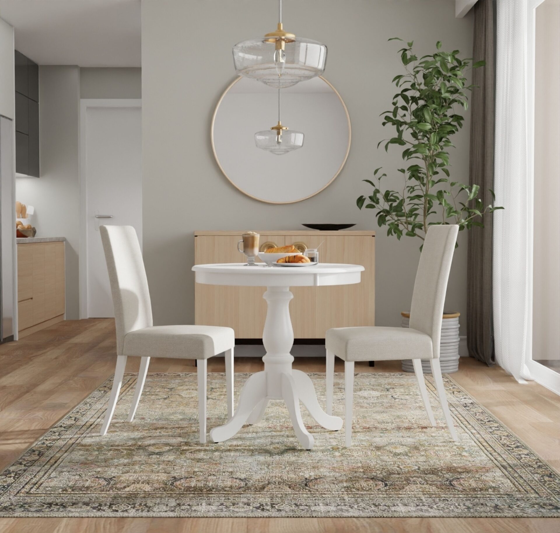 Inspired by designs of classic Americana, the Fairview Round Pedestal Table offers a traditional sensibility with a tough of modern glamour. A circular tabletop is supported by a lathe-turned pedestal on a wide base of carved feet. With a multi-step finish, the wood design provides strength from top to bottom making the Fairview Round Pedestal Table an asset in your kitchen or breakfast nook, or the perfect centerpiece to any dining room.